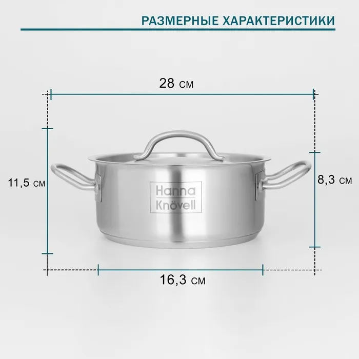 Кастрюля Hanna Knövell, 2 л, d=18 см, h=8 см, толщина стенки 0.6 мм, с крышкой, индукция, нержавеющая сталь — Характеристики