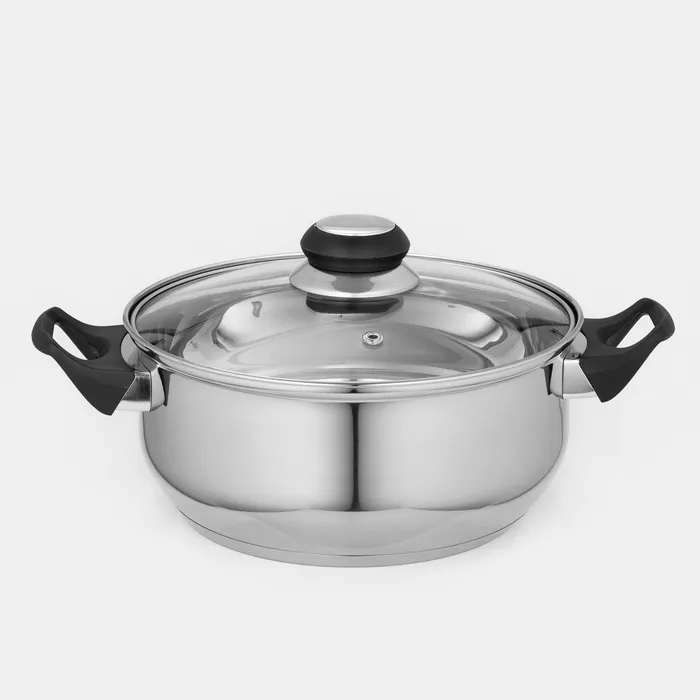 Кастрюля из нержавеющей стали с индукционным дном - это прочная и долговечная посуда, которая идеально подходит для приготовления различных блюд. Она имеет толстое дно, которое быстро и равномерно нагревается, обеспечивая идеальную температуру для приготовления пищи.