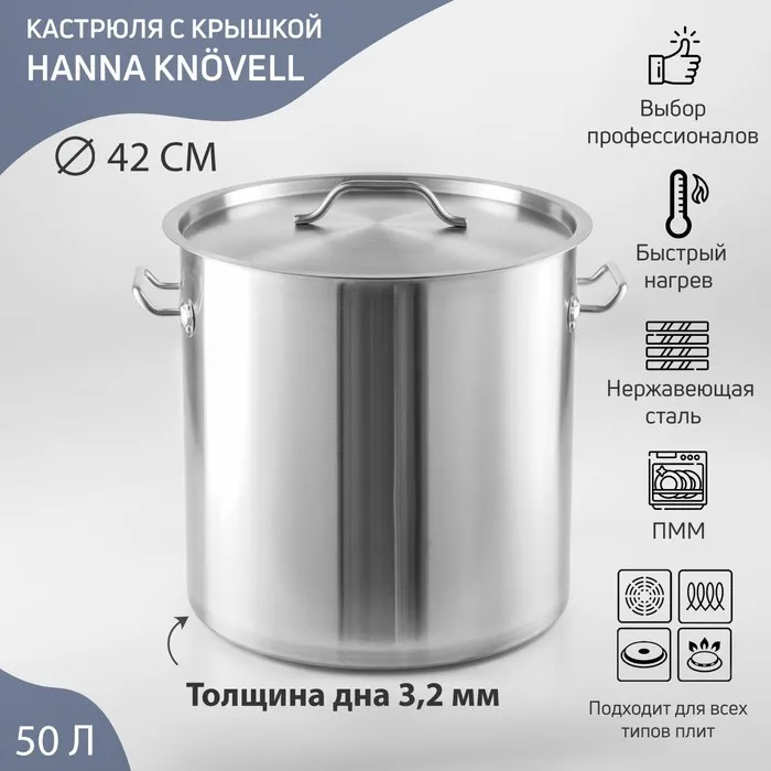 Кастрюля Hanna Knövell HoReCa, 25 л, толщина 0.8 мм, 201 сталь, дно 3 мм, с крышкой, с теплораспределительным слоем, индукция, нержавеющая столь — Характеристики