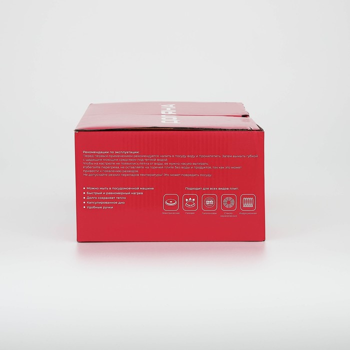 Подходит для всех типов плит и может использоваться в посудомоечной машине.