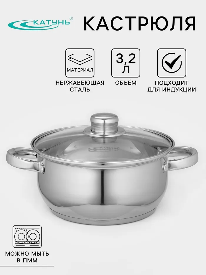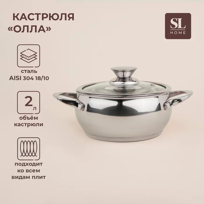 Кастрюля из нержавеющей стали Доляна «Вернер», 1.9 л, d=16 см, с крышкой — Характеристики