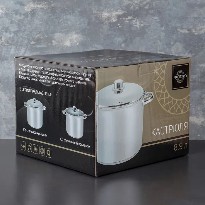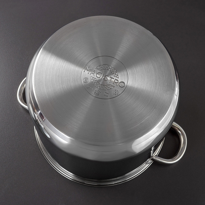 Кастрюля из нержавеющей стали Magistro Grande, 8,9 л, с крышкой, капсульное дно, индукция — Характеристики