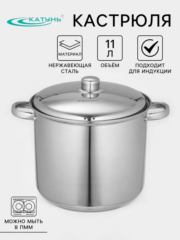 Кастрюля Катунь «Гретта», 11 л, d=26 см, капсульное дно, индукция, нержавеющая сталь — Характеристики