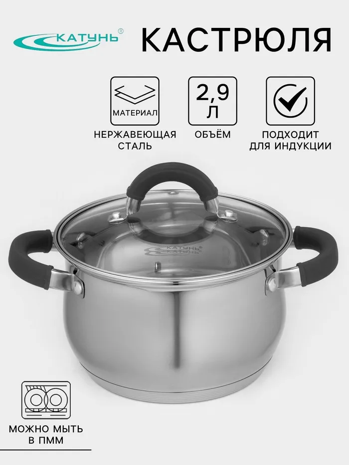 Кастрюля Катунь «Ирида», 2.9 л, d=18 см, капсульное дно, индукция, нержавеющая сталь — Характеристики