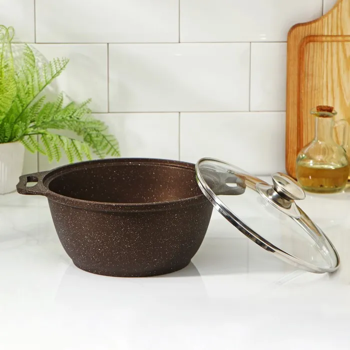 Кастрюля KUKMARA, 2 л, d=22 см, h=15 см, антипригарное покрытие, литой алюминий, цвет кофейный мрамор — Характеристики