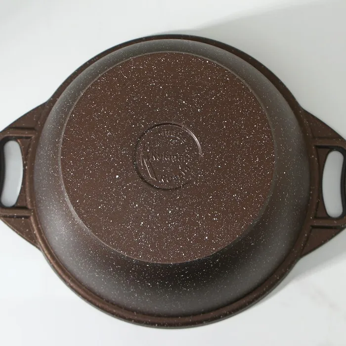 - Антипригарное мраморное покрытие наносится методом напыления, который гарантирует исключительную стойкость при эксплуатации.