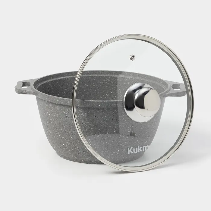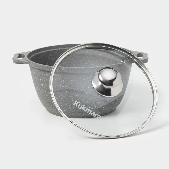 Кастрюля KUKMARA, 3 л, d=24 см, h=12.5 см, антипригарное покрытие, литой алюминий, серая — Характеристики