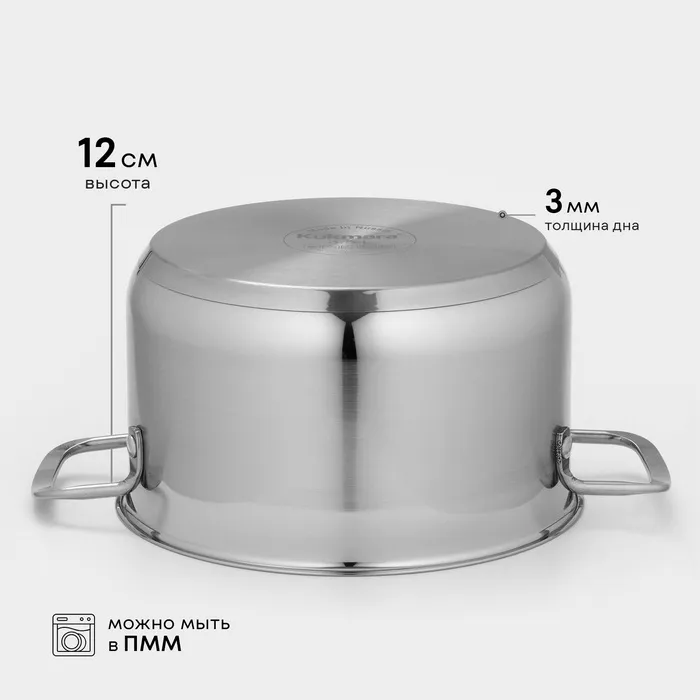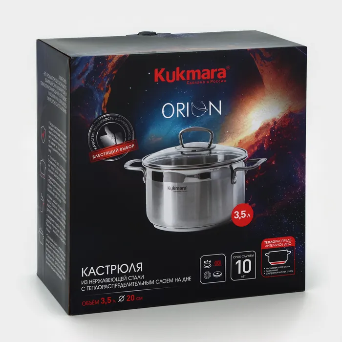 Кастрюля KUKMARA ORION, 3.5 л, d=20 см, стеклянная крышка, капсульное дно, индукция, нержавеющая сталь — Характеристики