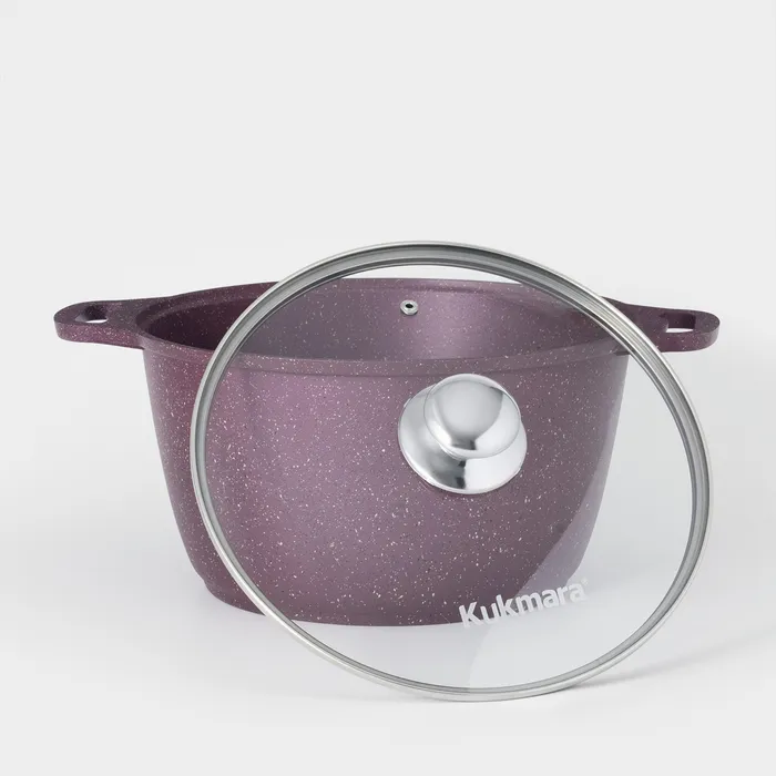 Кастрюля KUKMARA Trendy style, 6 л, d=26 см, h=15.5 см, антипригарное покрытие, стеклянная крышка, литой алюминий, фиолетовая — Характеристики