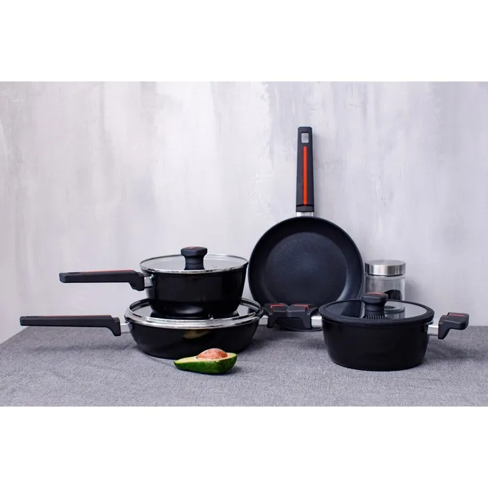 - Высококачественный кованый алюминий с толстым дном 3,5 мм сохранит форму изделия даже если кастрюля была перегрета.