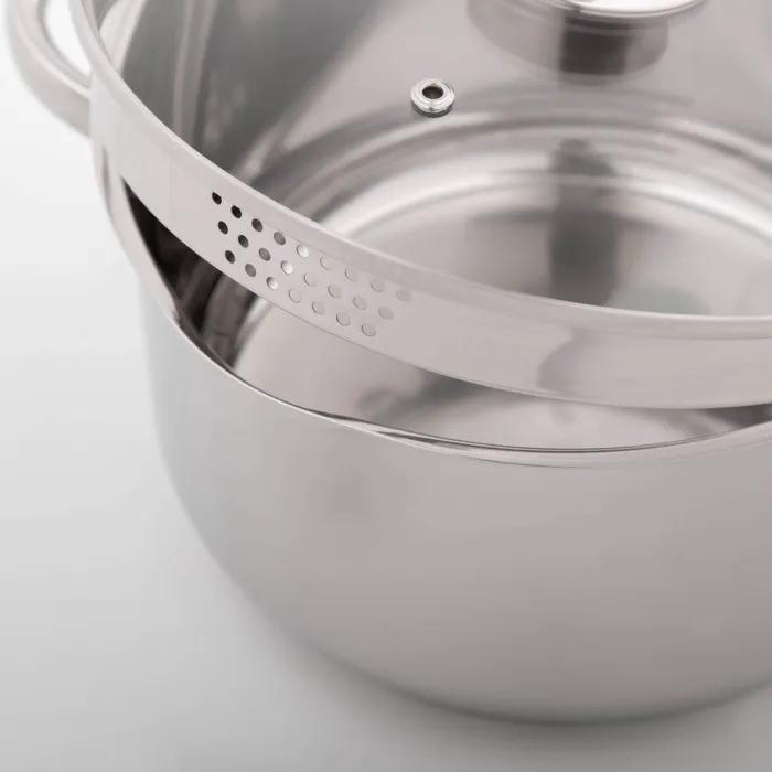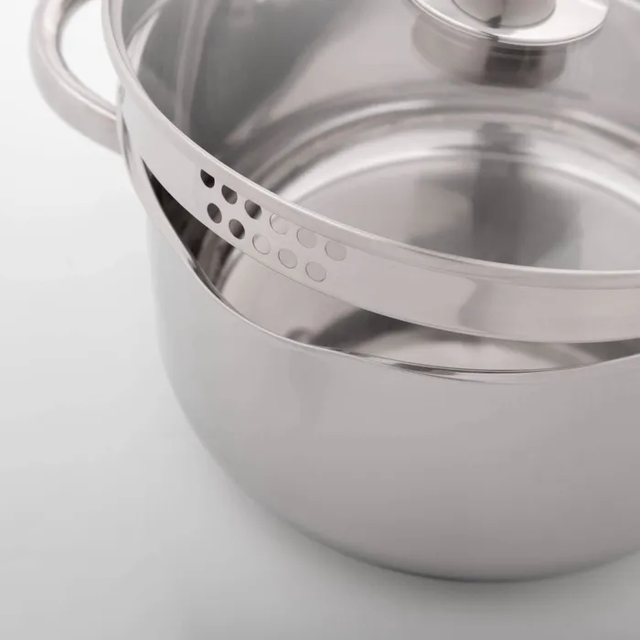 Кастрюля Magistro Klimena — идеальный выбор для вашей кухни! Она выполнена из высококачественной нержавеющей стали, оснащена крышкой-дуршлагом и удобным носиком для слива. Капсульное дно обеспечивает быстрый и равномерный нагрев, а совместимость с индукционными плитами делает эту кастрюлю универсальной.