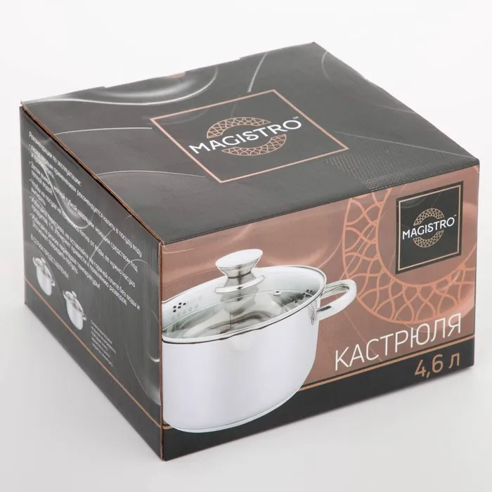Кастрюля Magistro Klimena, 4.6 л, AISI - 201, крышка-дуршлаг, носик для слива, капсульное дно, индукция, нержавеющая сталь — Характеристики
