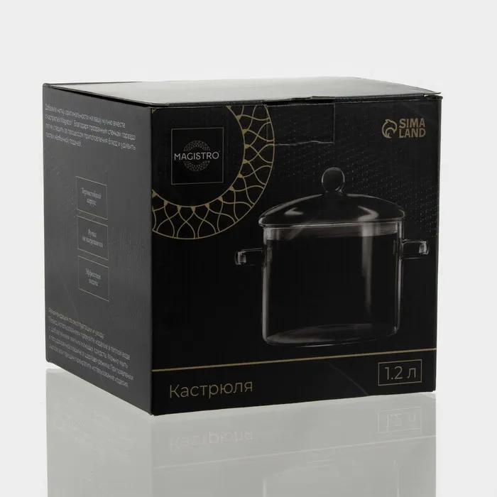 Кастрюля Magistro «Лия», 1.2 л, 20×14 см, жаропрочное стекло, прозрачная — Характеристики
