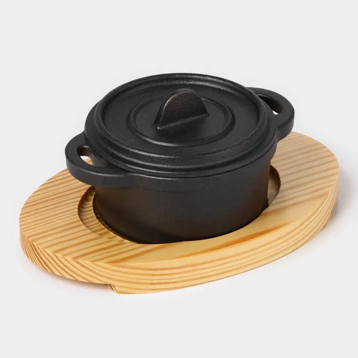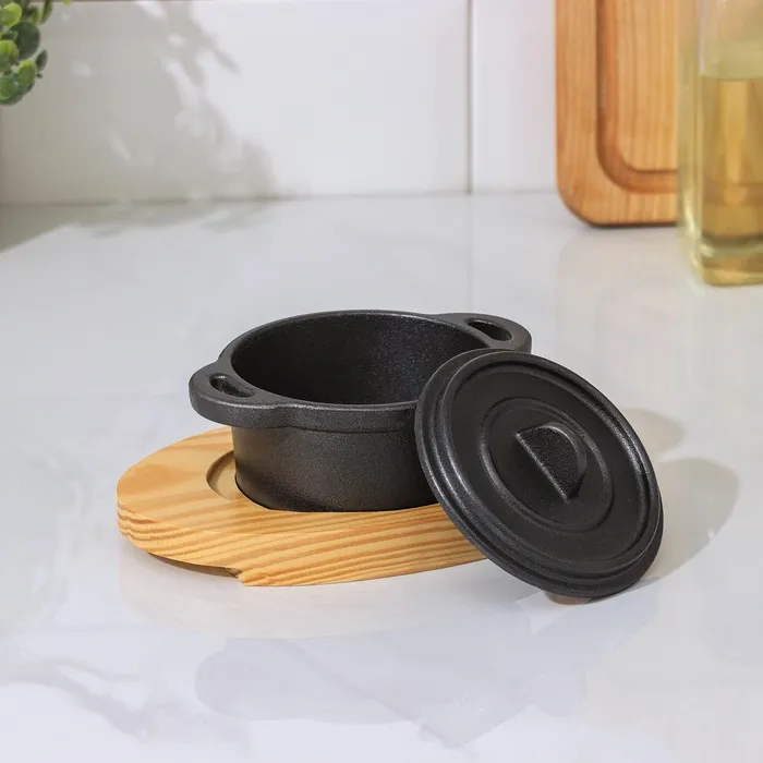 Кастрюля на подставке Volcano, 13×10×7.5 см, чугун, чёрная — Характеристики