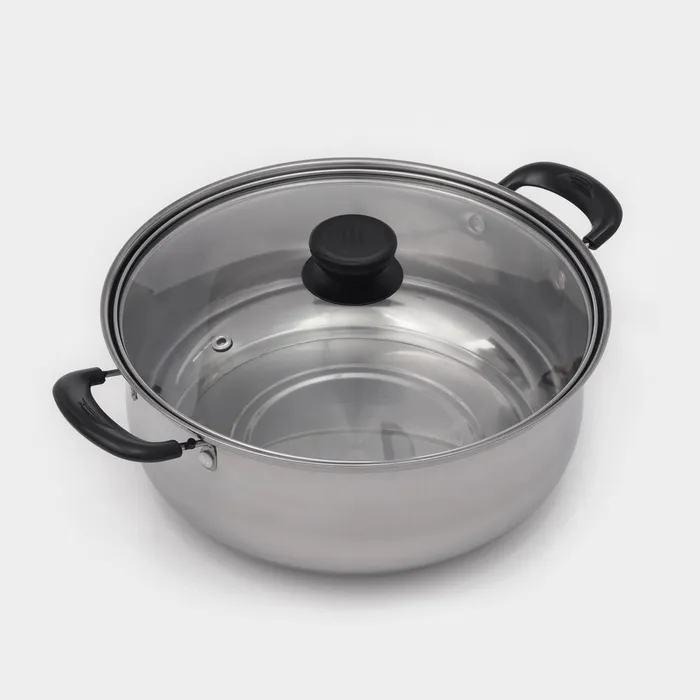 Эта кастрюля объемом 3,7 литра из прочной нержавеющей стали — универсальный помощник на вашей кухне. Она подходит для приготовления множества блюд, от супов до каш. Стеклянная крышка позволяет контролировать процесс варки.