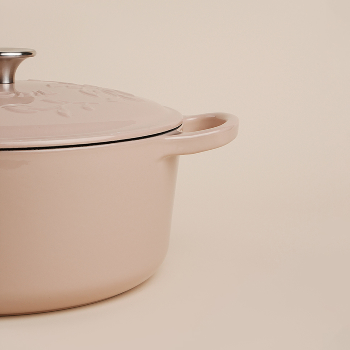Кастрюля изготовлена из прочного чугуна, который славится своей способностью равномерно распределять и удерживать тепло. Эмалированное покрытие внутри и снаружи обеспечивает не только долговечность, но и легкость ухода — вы сможете мыть её в посудомоечной машине. Прочная чугунная крышка помогает сохранить аромат и сочность блюд.