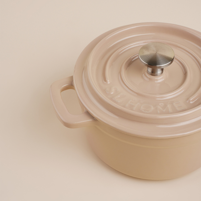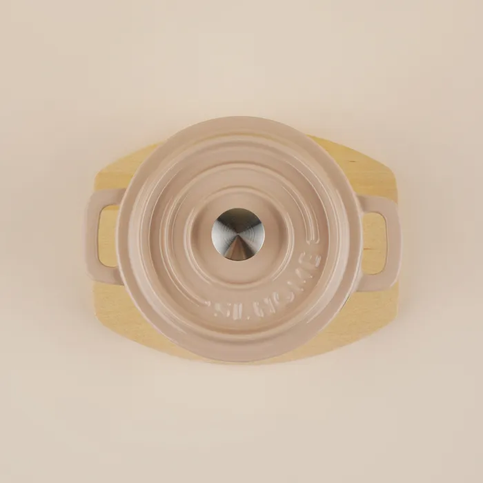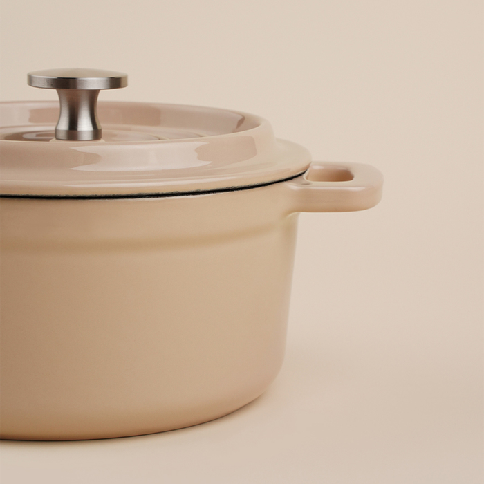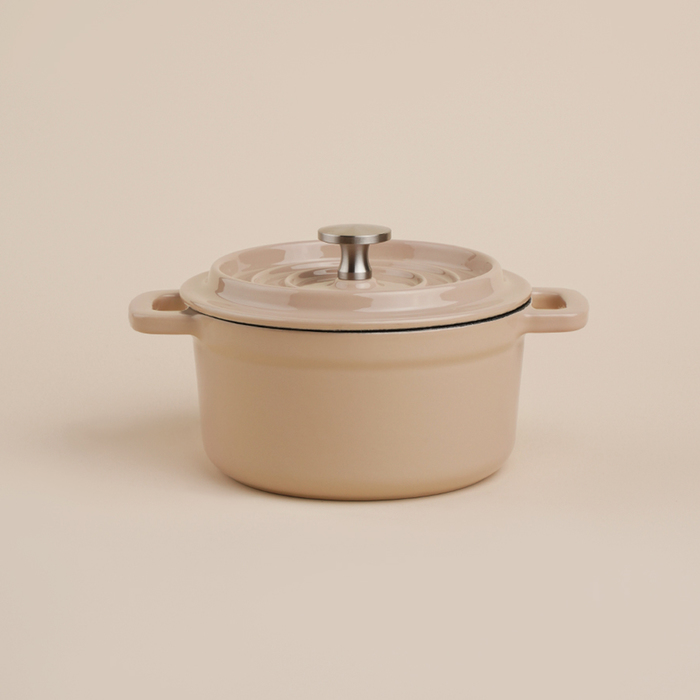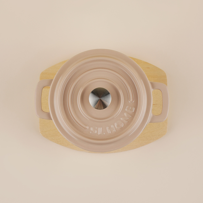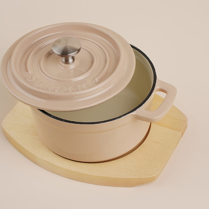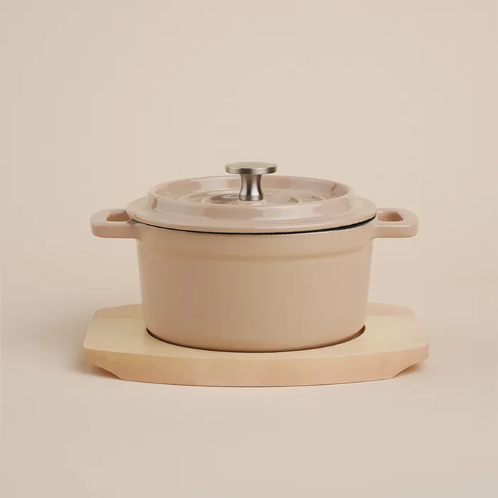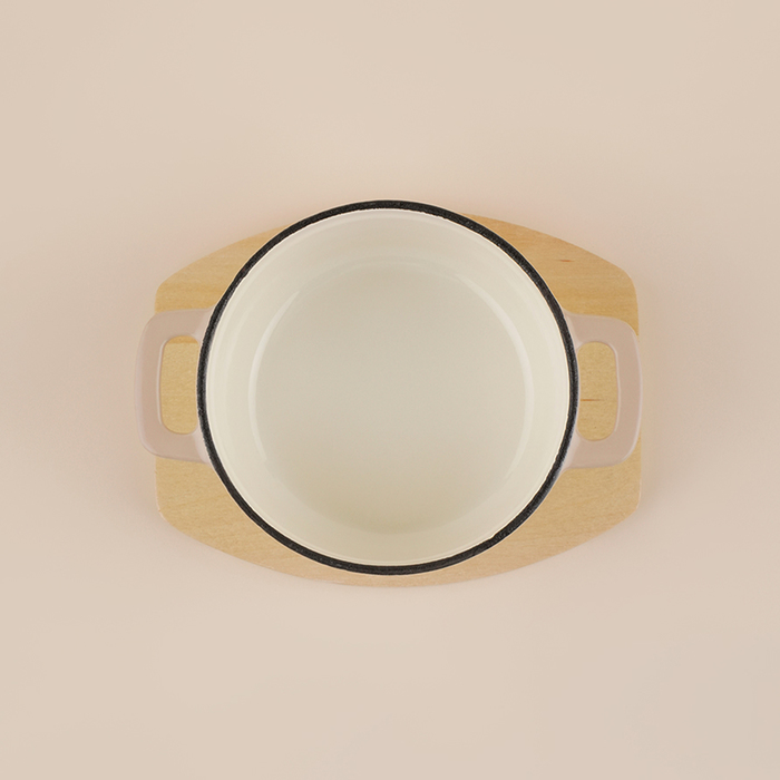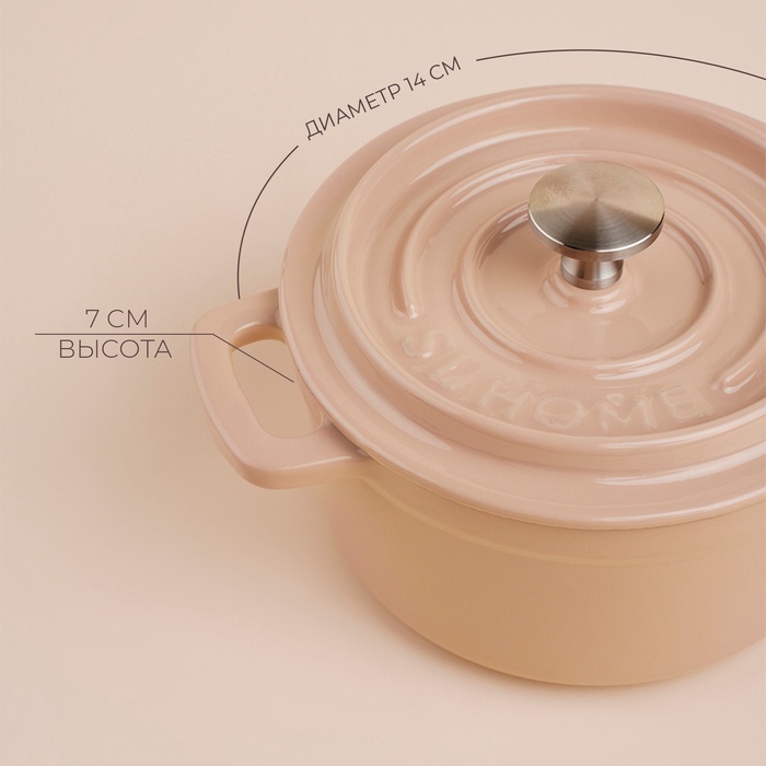 Кастрюля SL Home, 750 мл, d=14 см, h=7 см, на деревянной подставке, эмалированное покрытие, индукция, чугун, бежевая — Характеристики
