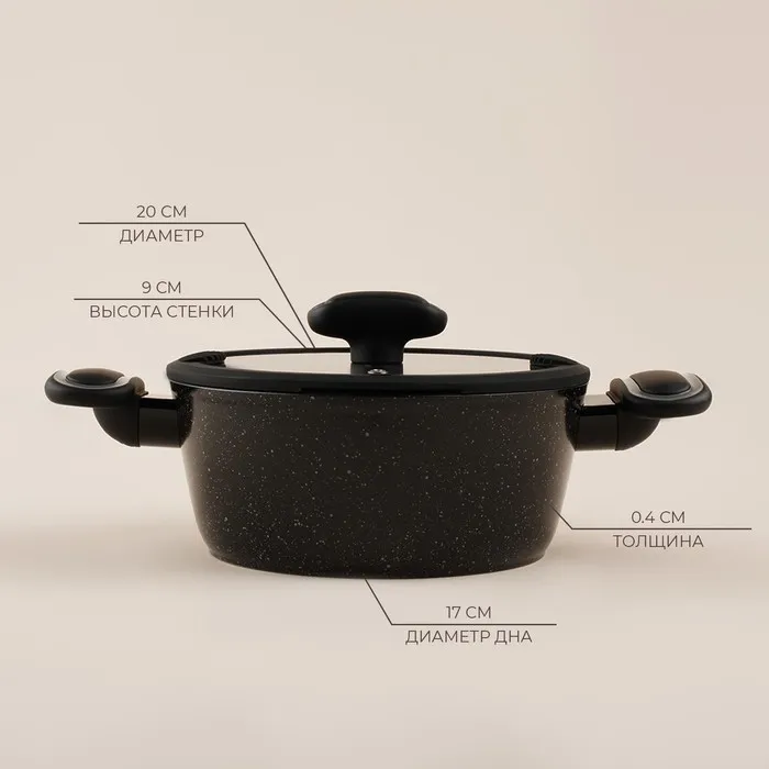 Кастрюля SL Home, d=20 см, h=8.8 см, индукция, с эмалированным покрытием, алюминий, чёрная — Характеристики