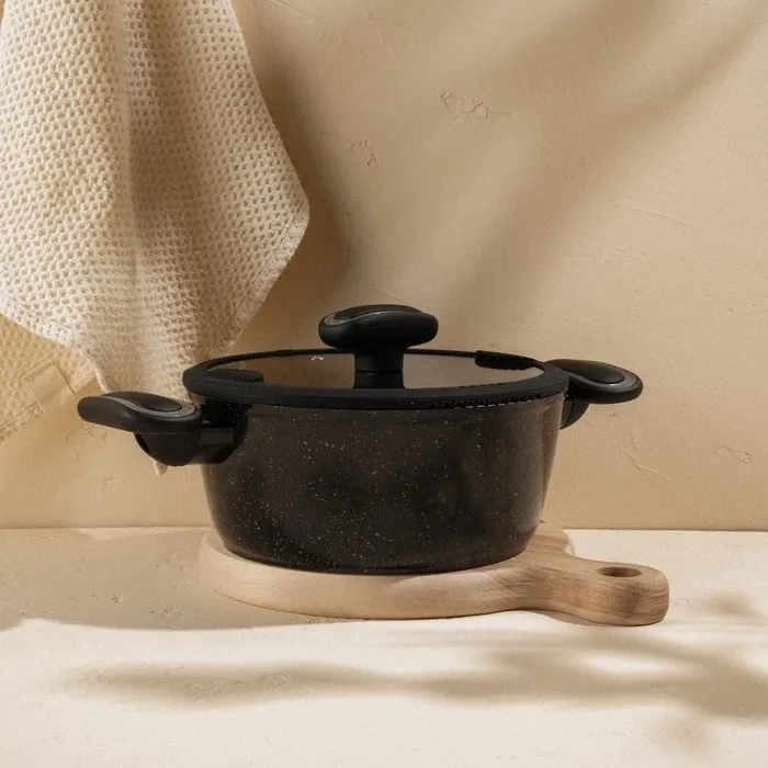 Приготовление пищи с комфортом и без лишних усилий — это то, что предлагает кастрюля с антипригарным покрытием от Sima-Land Home. Диаметр в 20 см и объем 2,2 литра делают эту кастрюлю идеальной для повседневных кулинарных задач, будь то варка, тушение или приготовление блюд на пару.