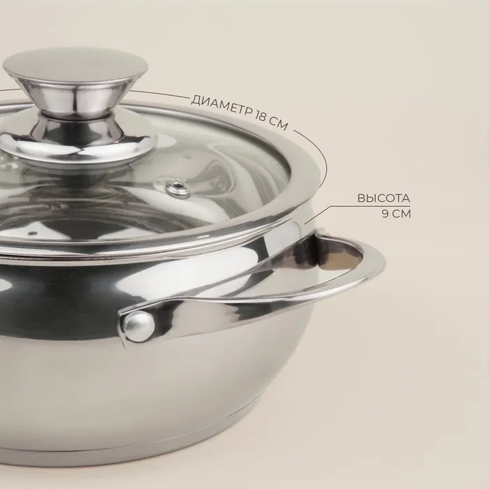 Кастрюля SL Home «Олла», 2 л, d=18 см, h=9 см, с крышкой, капсульное дно, индукция, нержавеющая сталь — Характеристики