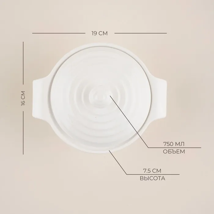 Кастрюля SL Home «Санторини», 750 мл, 19×16×7.5 см, жаропрочная керамика, белая — Характеристики
