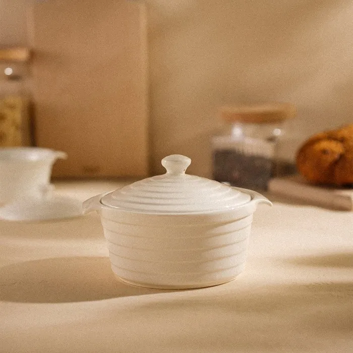 Элегантная кастрюля из жаропрочной керамики коллекции «Санторини» станет незаменимым помощником на вашей кухне, превращая процесс готовки в настоящее удовольствие. Этот стильный белоснежный аксессуар объемом 750 мл идеально подходит для приготовления и подачи блюд, сохраняя тепло и аромат ваших кулинарных шедевров.