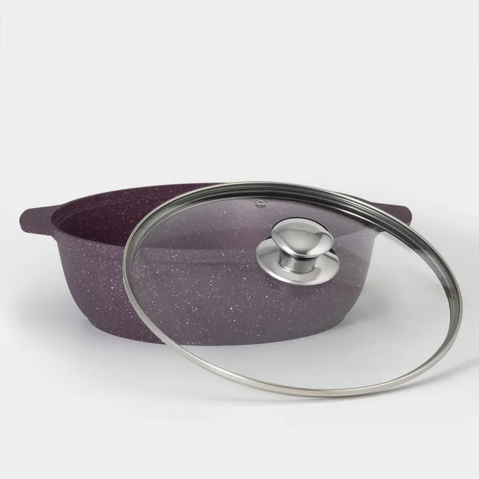 Кастрюля-жаровня алюминиевая Trendy style, 3 л, d=26 см, h=9 см, антипригарное покрытие, стеклянная крышка, цвет фиолетовый — Характеристики