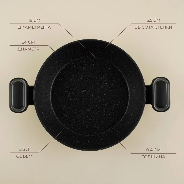 Кастрюля - жаровня SL Home, d=24 см, h=6.5 см, антипригарное покрытие, индукция, алюминий, чёрная — Характеристики