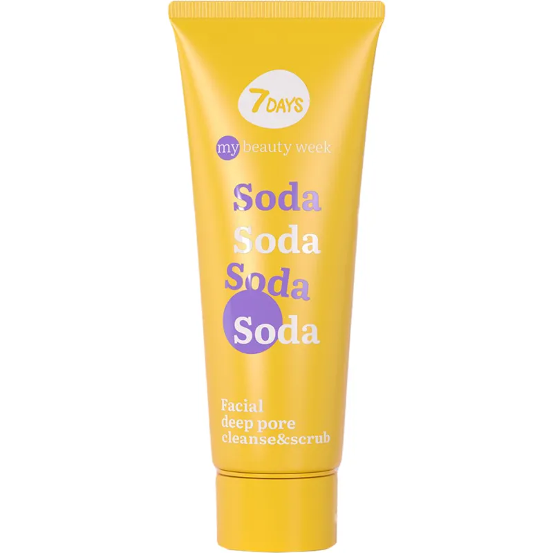 Скраб для лица 7 Days Soda глубоко очищает поры, нежно удаляет кератиновые частицы и выравнивает тон кожи. В его составе сода, цинк, витамин C и ментол. Сода помогает глубоко очищать и сужать поры, цинк борется с загрязнениями, ментол уменьшает покраснения, а витамин C выравнивает и укрепляет кожу. Наносите на чистую влажную кожу, избегая области вокруг глаз. Массируйте кожу легкими круговыми движениями (2-3 минуты). Тщательно смойте водой. Объем упаковки 80 мл.