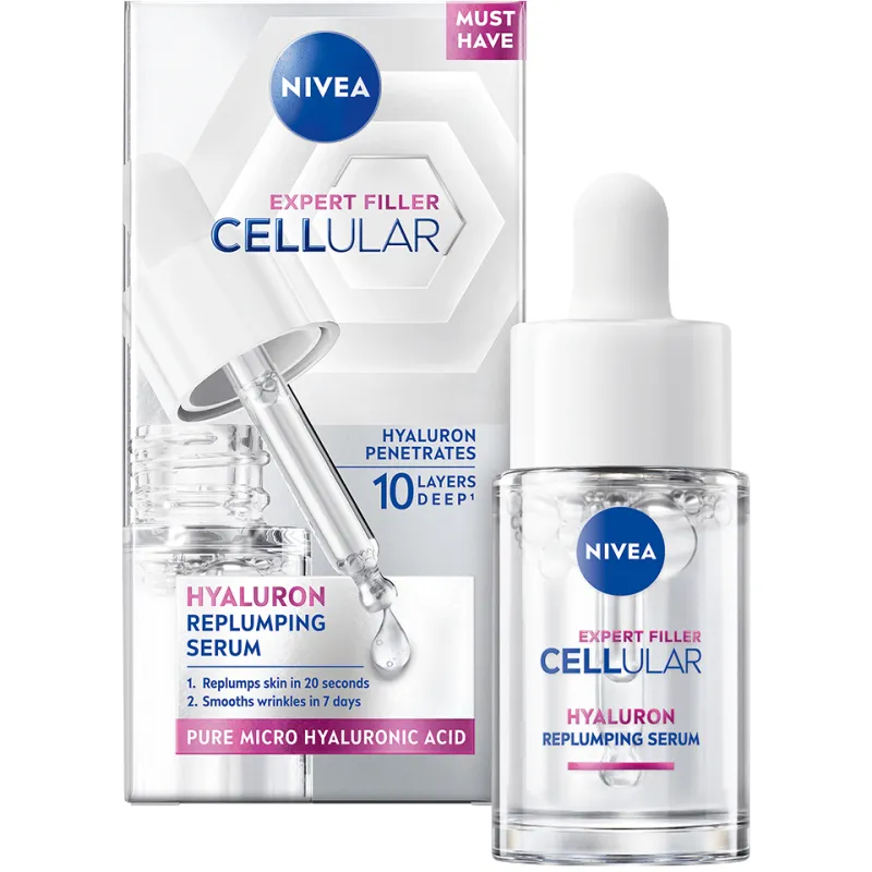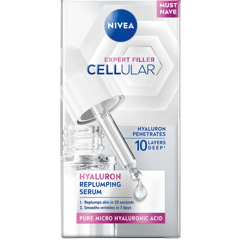 Nivea Cellular Expert Filler Hyaluron Replumping - это передовая антивозрастная сыворотка, которая помогает сделать кожу увлажненной, более гладкой и молодой на вид. Легкая текстура сыворотки мгновенно впитывается, не оставляя жирного ощущения на коже. Содержит чистую микрогранулированную гиалуроновую кислоту. Безопасна для кожи и подходит для всех типов кожи, включая чувствительную. Объем упаковки: 15 мл.