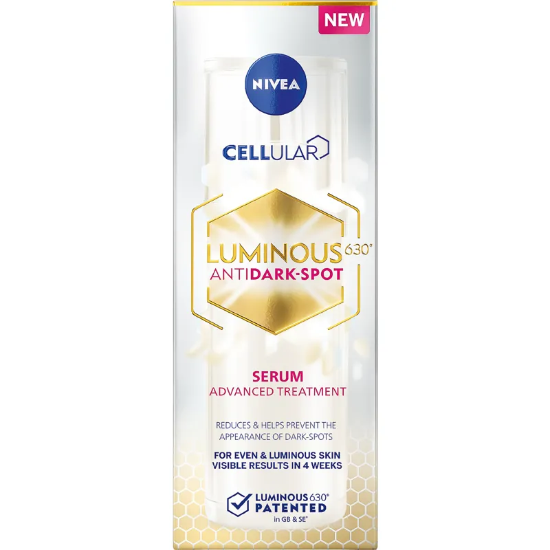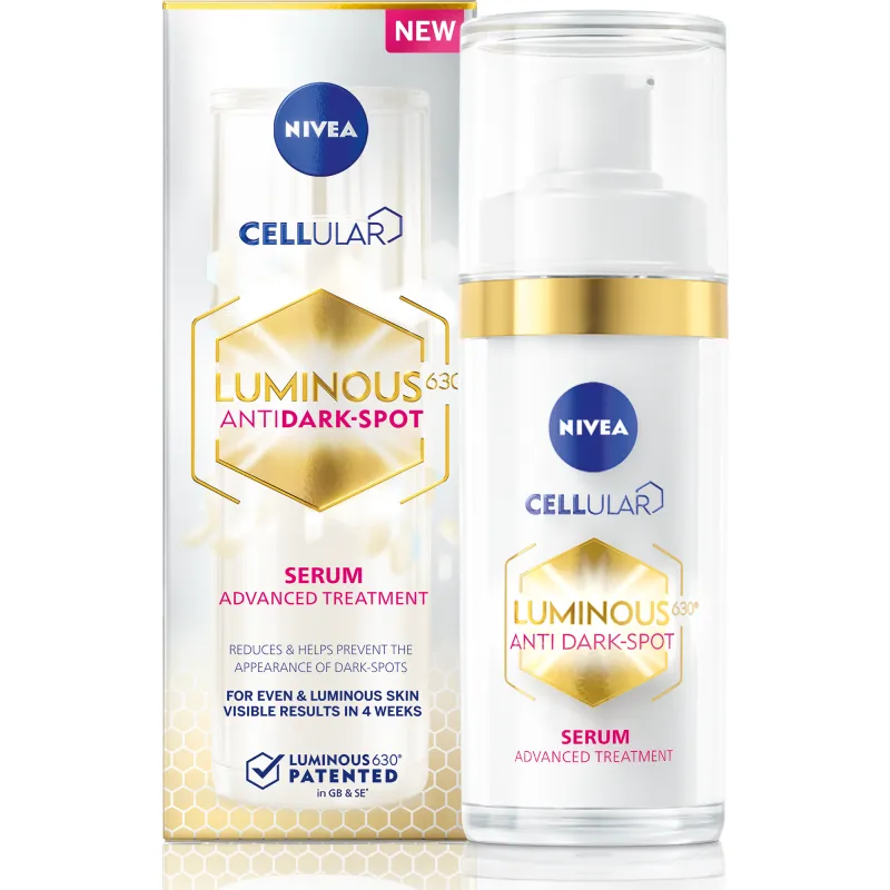 Осветляющая сыворотка Nivea Cellular Luminous630 Anti-Spot уменьшает пигментные пятна, вызванные солнцем, старением, беременностью или менопаузой. Она также предотвращает их повторное появление. Используйте ежедневно утром и вечером. Объем упаковки 30 мл. Мы постоянно обновляем информацию о продукте. Однако всегда рекомендуется проверять информацию на упаковке.
