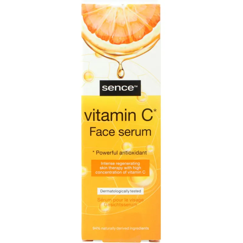 Сыворотка для лица Sence с витамином C эффективно выравнивает и осветляет кожу. Богатая витамином C формула поддерживает интенсивное обновление кожи, придавая ей сияющий вид на долгое время. Содержит до 94% натуральных ингредиентов. Объем упаковки: 30 мл. Рекомендуется всегда проверять информацию на упаковке.