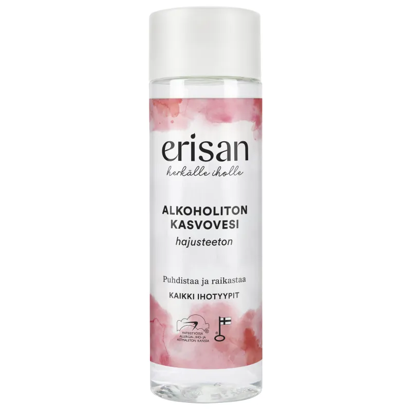 Алкогольный тоник Erisan подходит для всех типов кожи, включая чувствительную. Он завершает очищение лица и освежает кожу. Состав с провитамином B5 и аллантоином увлажняет, ухаживает и успокаивает чувствительную кожу. Не содержит отдушек и красителей. Разработан в сотрудничестве с Союзом аллергии, кожи и астмы. Произведено в Финляндии.