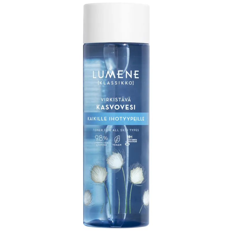 Lumene Klassikko Освежающий тоник для лица завершает очищение кожи идеально. Этот тоник, подходящий для всех типов кожи, содержит северный хлопок и чистейшую северную родниковую воду. Он эффективно защищает, увлажняет и питает кожу лица, оставляя ее свежей и обновленной. Все продукты Lumene Klassikko произведены в Финляндии с использованием чистых и натуральных ингредиентов. Тоник не содержит минеральных масел, парабенов или формальдегидов. Объем упаковки 200 мл.