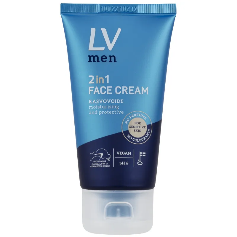 Крем для лица LV Men без отдушек и красителей эффективно увлажняет кожу, оставляя ощущение свежести и уменьшая стянутость. Подходит для чувствительной кожи, содержит увлажняющий глицерин и защитные антиоксиданты, которые оберегают кожу от стресса и загрязнений. Изготовлен в Финляндии в сотрудничестве с Ассоциацией аллергии и астмы. Крем подходит для использования как в дневное, так и в ночное время. Объем упаковки 75 мл.