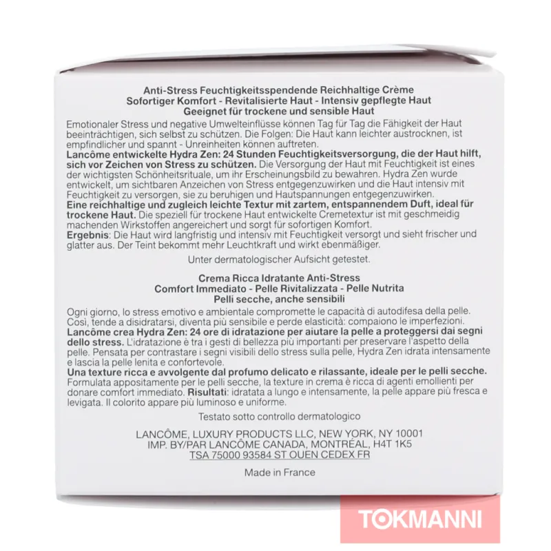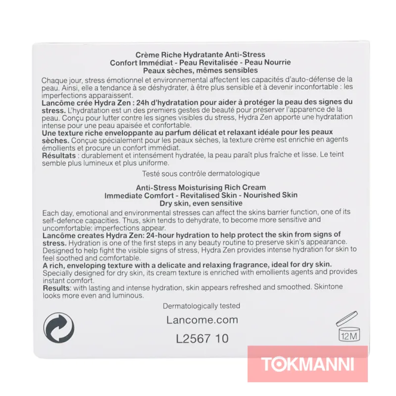 Крем для лица Lancome Hydra Zen Moisturizing Anti-Stress Rich обладает глубоко увлажняющим и успокаивающим действием. Он создан для снятия стресса с кожи и поддержки её естественного баланса. Этот крем идеально подходит для всех типов кожи, обеспечивая ей комфорт и мягкость в течение всего дня.