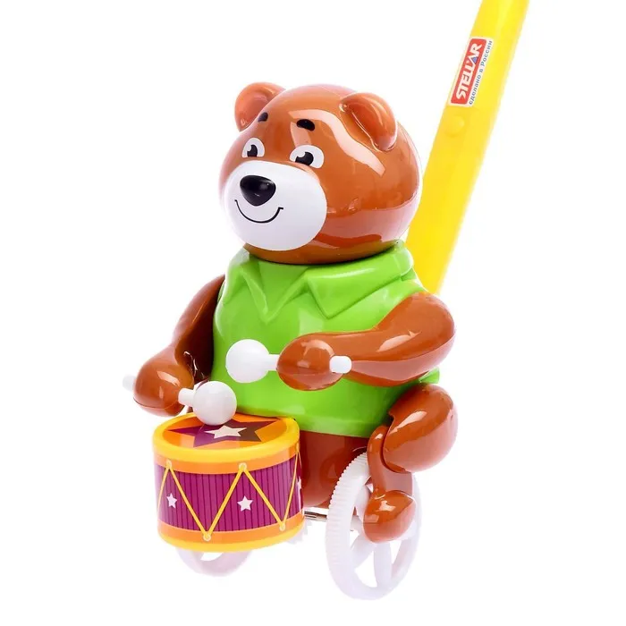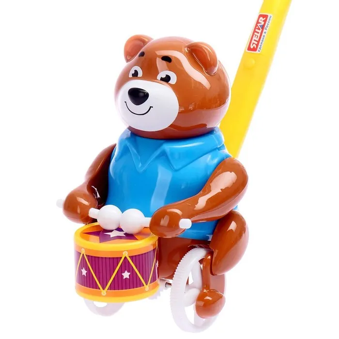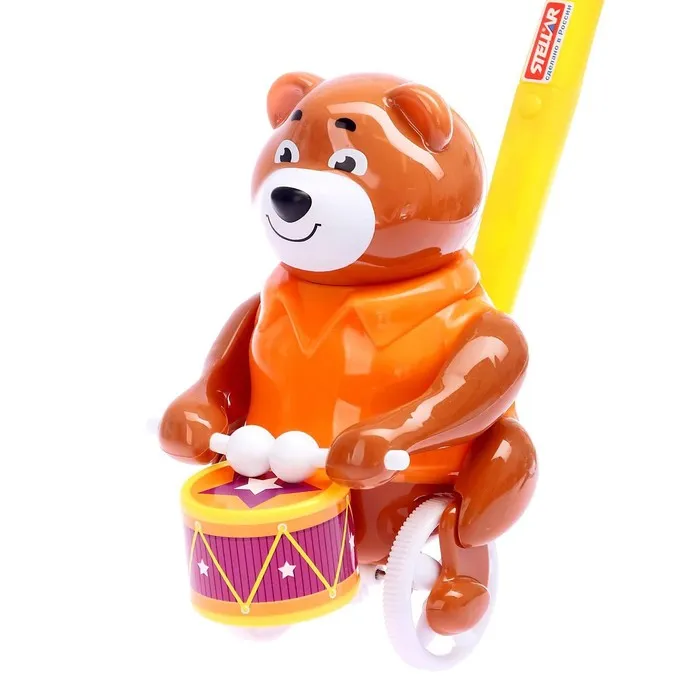 Каталка «Барабанщик» — это симпатичный мишка, который умеет стучать палочками по барабану. Мишка приветливо улыбается, поэтому на его мордочке всегда видно доброе выражение. Он станет хорошим другом для вашего ребёнка как на прогулке, так и дома.