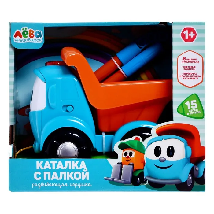 Каталка детская на верёвке и палке «Грузовичок Лёва», 15 песен и звуков, световые эффекты — Характеристики