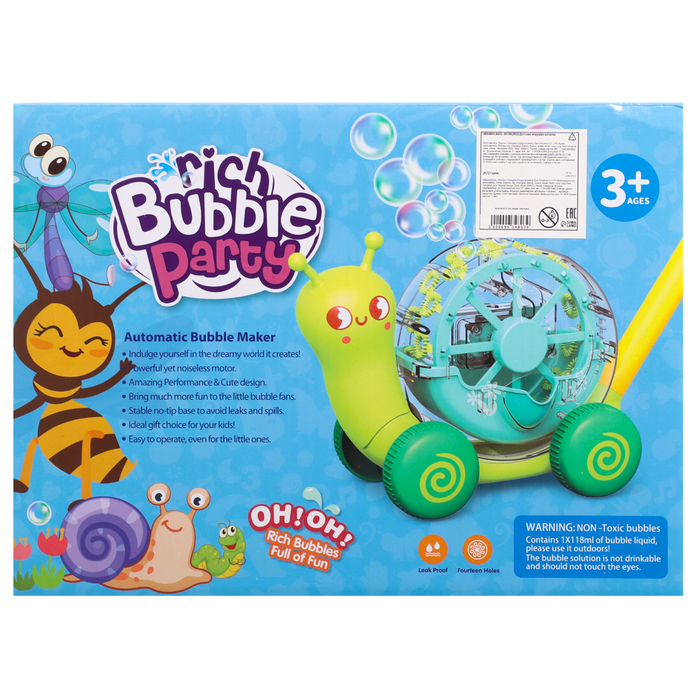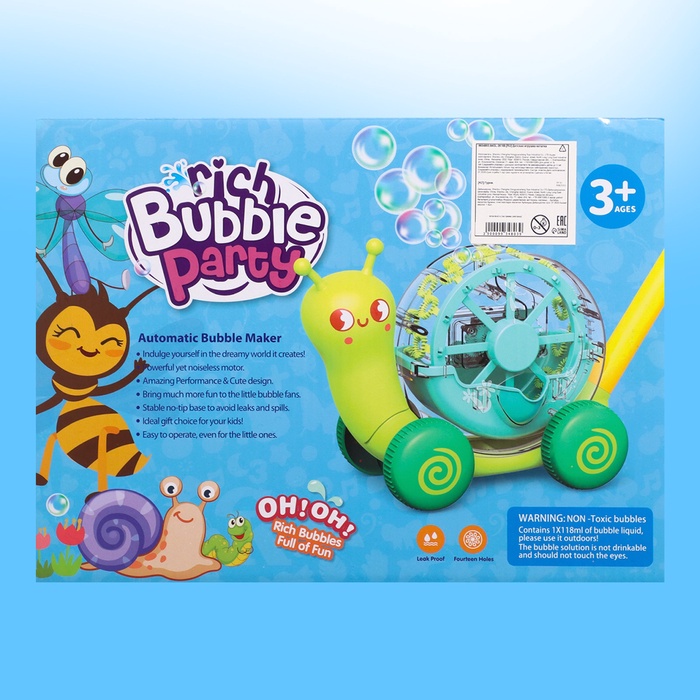Каталка с мыльными пузырями «Улитка» — это яркая и увлекательная игрушка для детей от 3 лет. Она станет отличным вариантом для прогулок или активных игр дома, создавая атмосферу радости и веселья. Игрушка выполнена в форме улитки, светится во время игры и генерирует мыльные пузыри, что делает её особенно привлекательной для малышей.