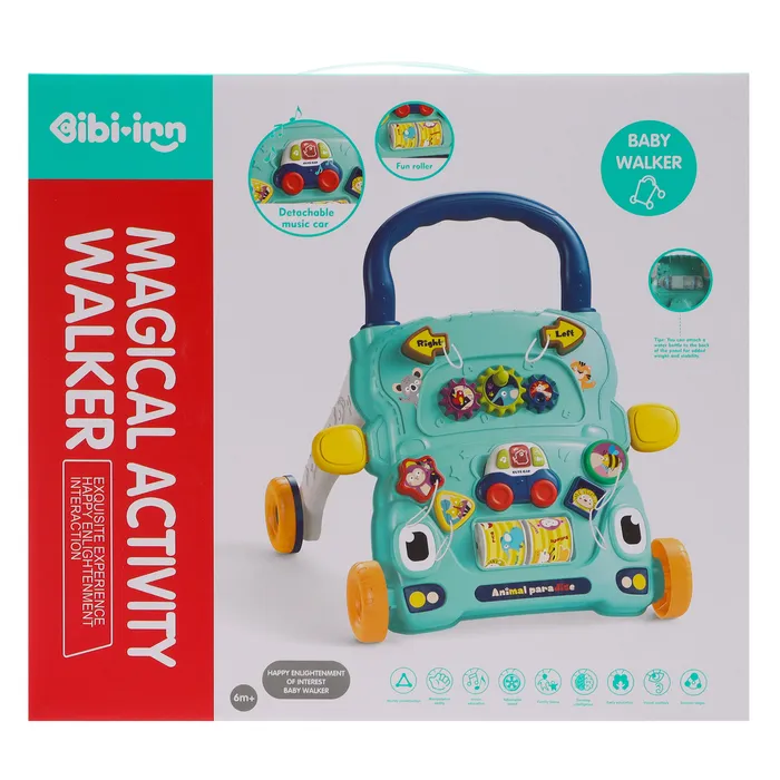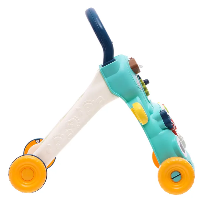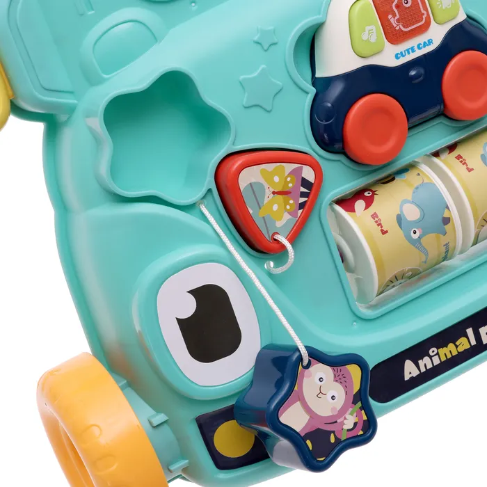 Игрушка-каталка «Машинка» станет отличным помощником для малышей, которые только начинают осваивать первые шаги. Яркий бирюзовый цвет и увлекательные игровые элементы превращают прогулки в настоящее приключение. Это не просто ходунки, а целый игровой центр, который поможет развивать моторику, координацию и воображение.