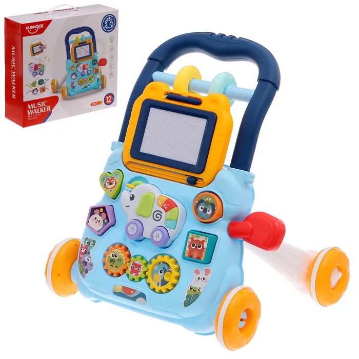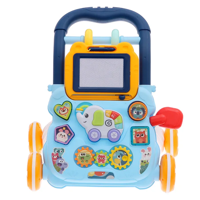 Игрушка-каталка «Весело гуляем» станет отличным помощником для малышей, которые только начинают осваивать первые шаги. Яркий голубой цвет и увлекательные игровые элементы превращают прогулки в настоящее приключение. Это не просто ходунки, а целый игровой центр, который поможет развивать моторику, координацию и воображение.