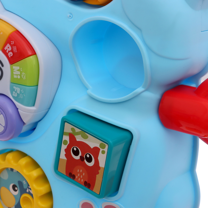 Встроенная панель с подвижными элементами и сортером надолго увлечёт малыша. Ребёнок сможет крутить шестерёнки, изучать формы и цвета, слушать приятные мелодии. Благодаря звуковым и световым эффектам каждое движение станет весёлым открытием.