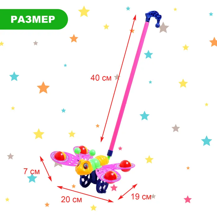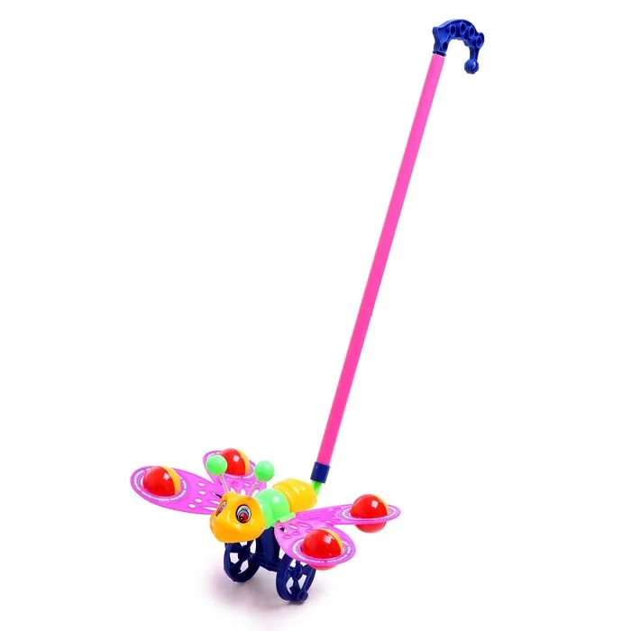 - Каталка на палке «Бабочка» выполнена из качественных материалов ярких цветов, что привлечёт внимание малыша.