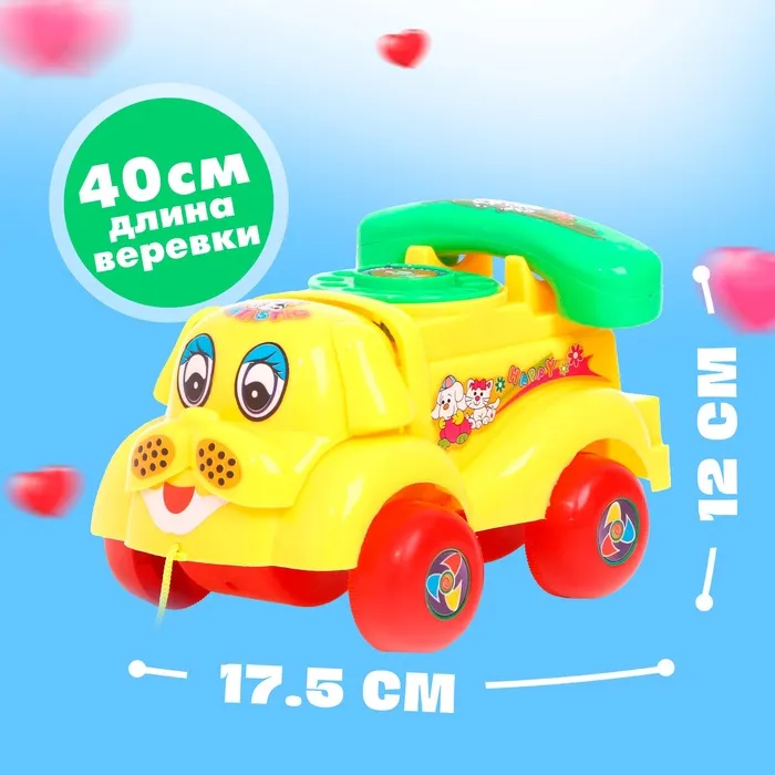 Каталка «Собачка» станет любимым спутником малыша в прогулках и играх. Эта яркая игрушка выполнена в форме автомобиля-собаки и сочетает в себе забавный дизайн и простоту использования. Ребёнок сможет легко катать её за собой благодаря удобной верёвке длиной 40 см.