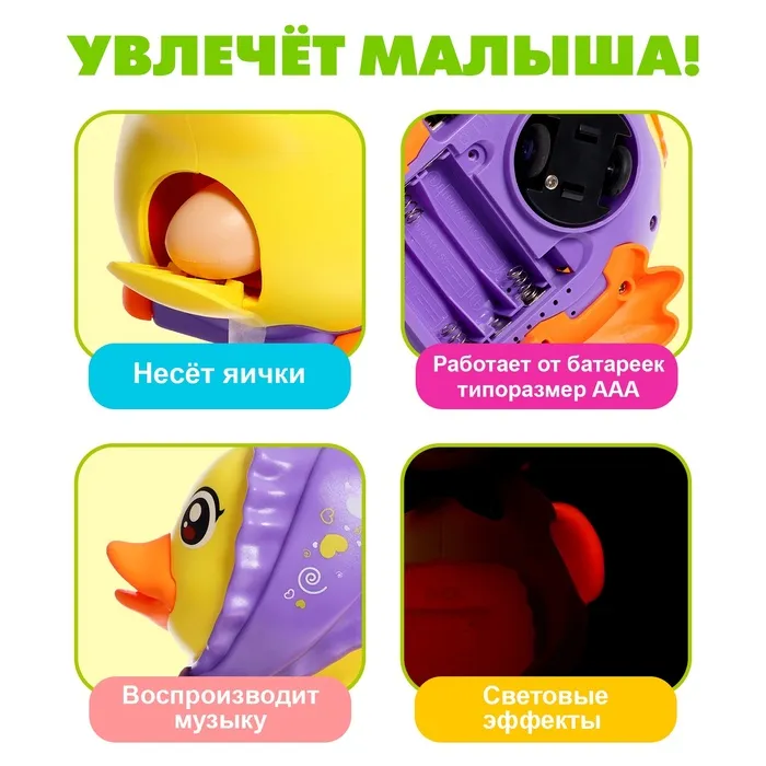 Каталка «Утка-несушка», звуковые эффекты, откладывает яйца — Характеристики