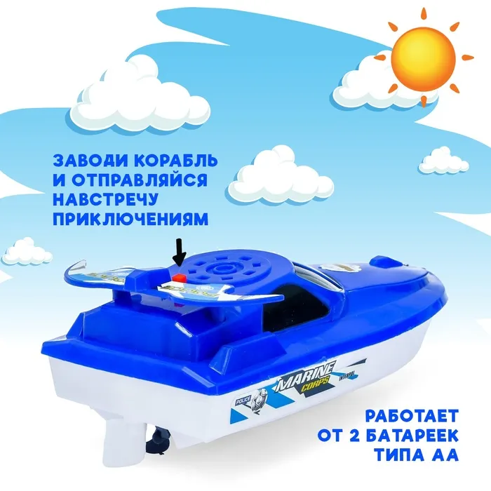 Катер «Морской патруль», работает от батареек, цвета МИКС — Характеристики