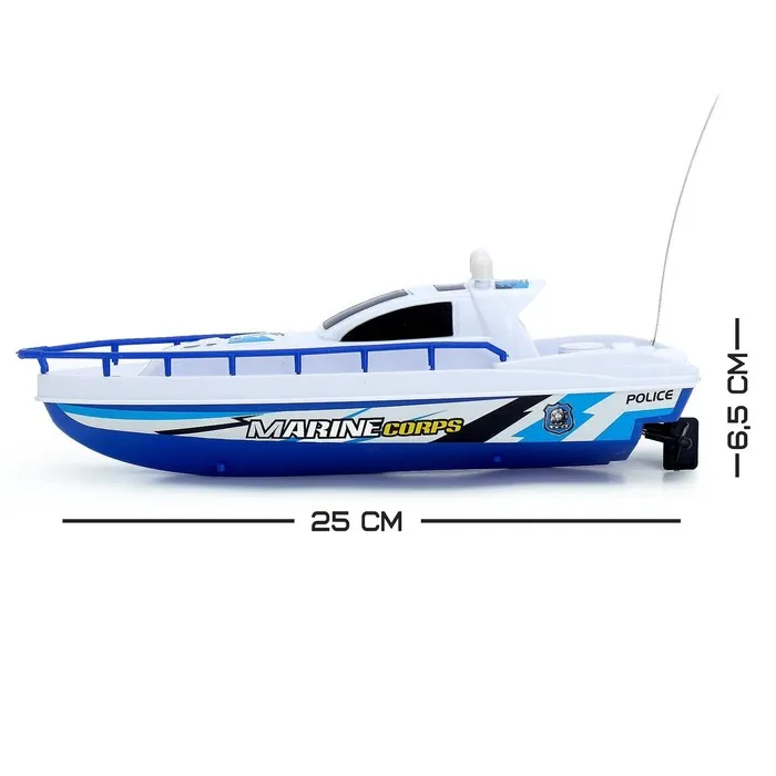 - Плавает по воде: игрушка не просто движется по поверхности воды, но и выглядит как настоящий полицейский катер. Прочный пластик и металлические элементы обеспечивают долговечность, а синий цвет добавляет реализма и заметности.