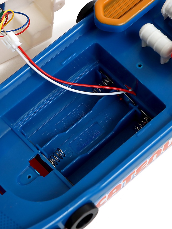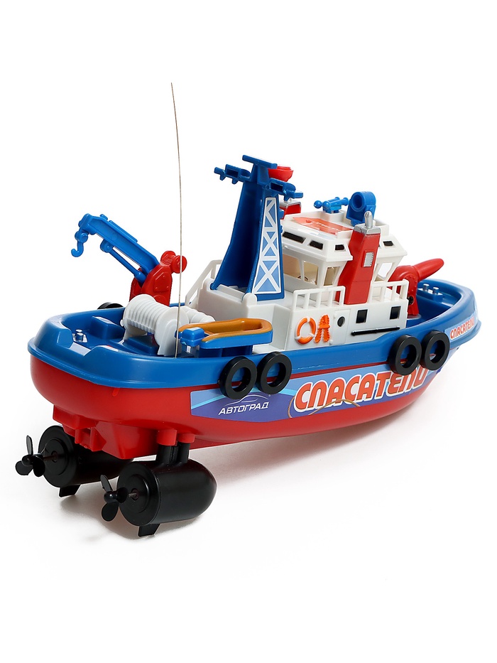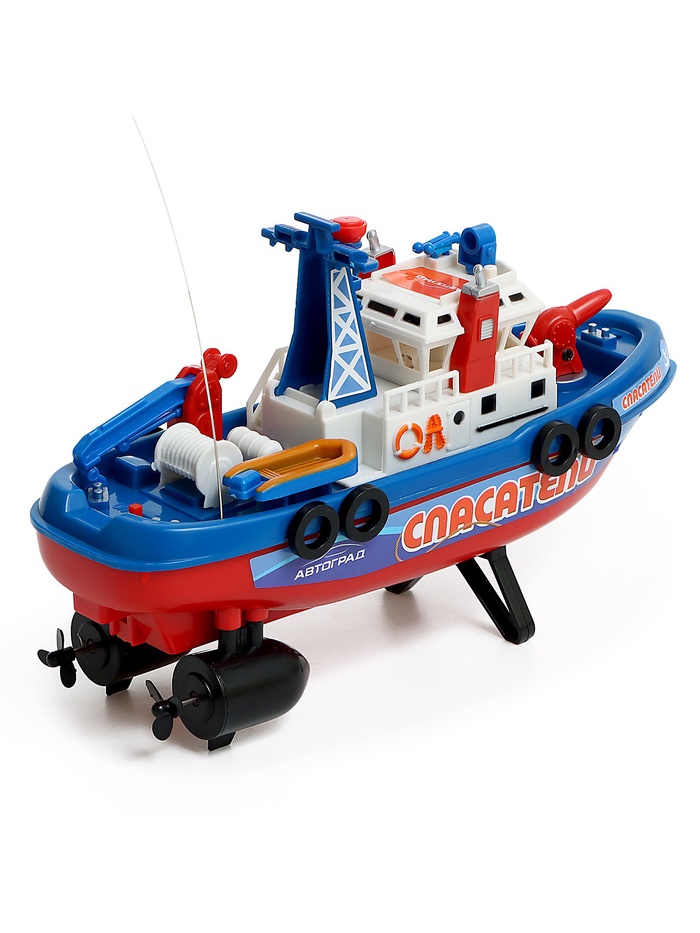 - Игрушка с первых секунд завладеет вниманием ребёнка, ведь она так похожа на настоящее судно. Корабль оснащён мощными насосами и спасательными кругами. Играть с такой техникой — одно удовольствие.