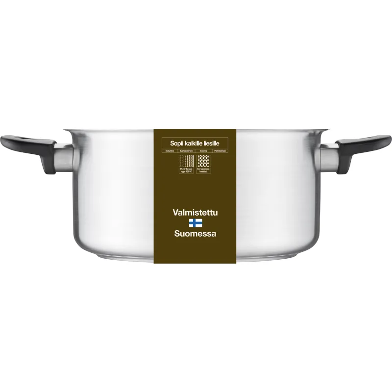 Легкая и прочная кастрюля Matti&Maija идеально подходит для приготовления ежедневных блюд. Изготовлена из нержавеющей стали, 90% которой – переработанные материалы. Благодаря стальному дну тепло равномерно распределяется по всей поверхности кастрюли. Стальная крышка оснащена пароотводом, внутри кастрюли имеется мерная шкала. Пластиковые ручки обеспечивают надежный хват и не нагреваются.