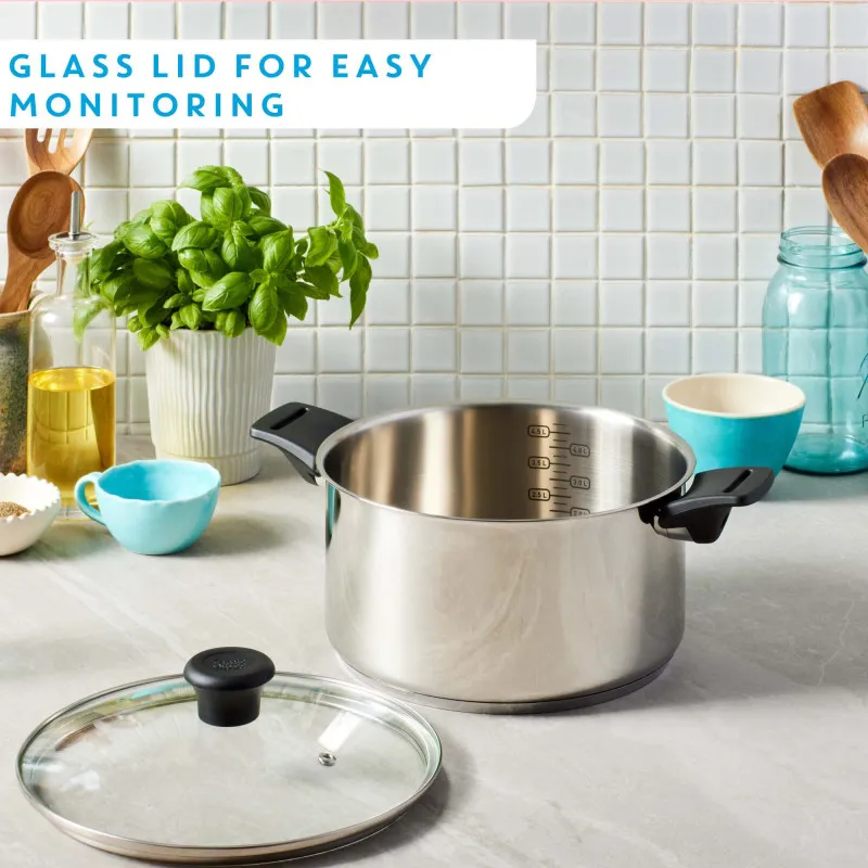 Дополнительные преимущества: кастрюля оснащена инновационной технологией Thermo-fusion™, обеспечивающей быстрое и равномерное распределение тепла. Это позволяет сэкономить время на приготовление и улучшить качество блюд. Мерная шкала внутри кастрюли помогает точно отмерять количество ингредиентов без использования дополнительных приборов.